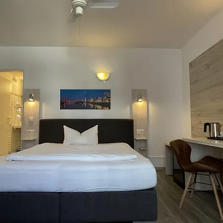 Die 17 m^2 große Ferienwohnung Messe Zimmer bietet einen Blick auf den Garten und liegt 3 km von Oberkassel entfernt